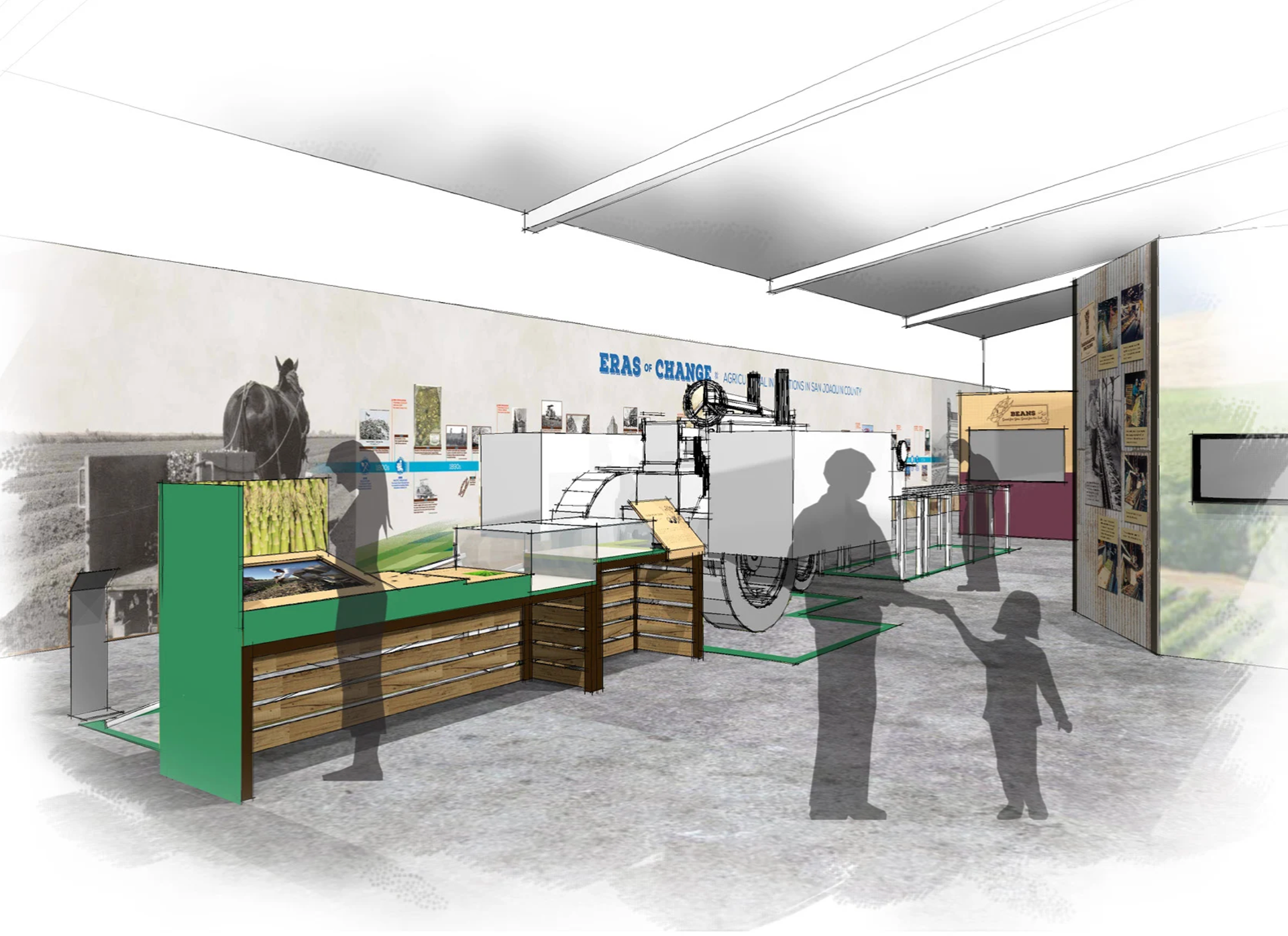“Innovators in Agriculture” is a permanent exhibit at the San Joaquin Historical Society and Museum. It illustrates the development of intensive, irrigated agriculture in San Joaquin County after c. 1900.
